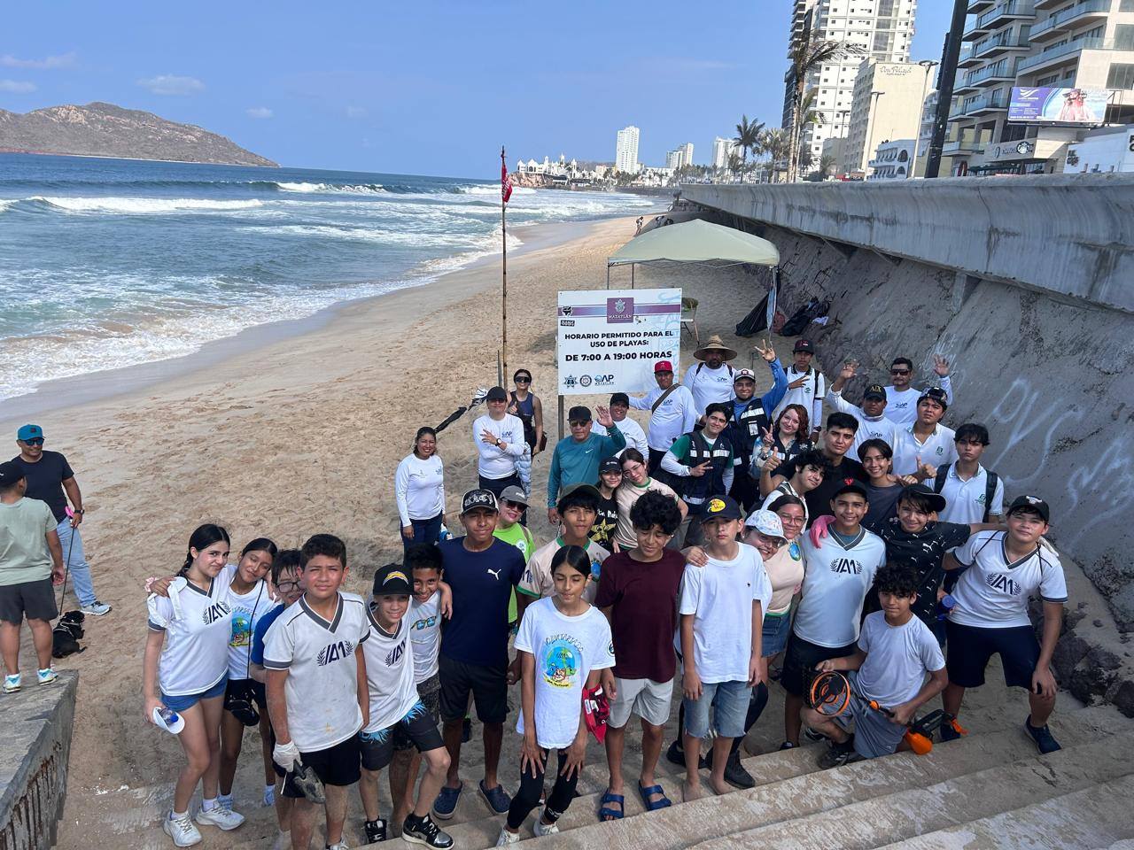 En el marco del programa Municipal "Mazatlán Te Quiero Limpio", impulsado por la Presidenta Municipal Estrella Palacios Domínguez se llevo a cabo limpieza de playa en Avenida del Mar coordinada por Operadora y Administradora de Playas del Ayuntamiento de Mazatlán, liderada por la Presidenta Municipal se conto con la participación del sector estudiantil y empresas del sector privado, como la escuela secundaria del Instituto Anglo Moderno y la empresa Grupo STI y diferentes direcciones del Ayuntamiento de Mazatlán.