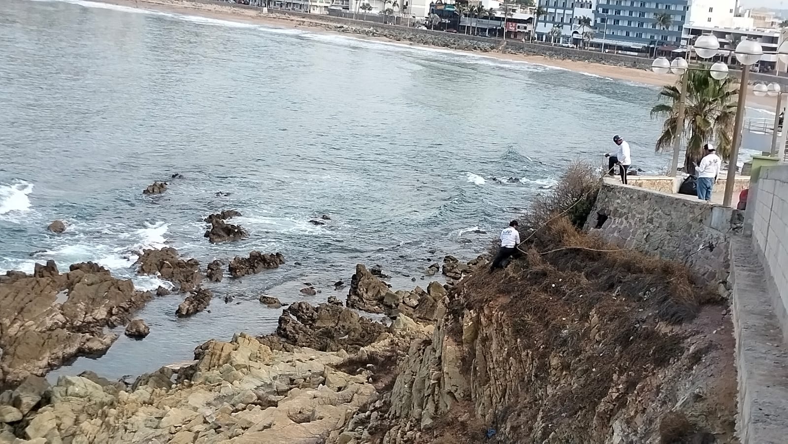 (OAP) Gobierno de Mazatlán, actividad de limpieza de playa Acantilado Olas Altas, zona paseo Claussen y paseo del Centenario